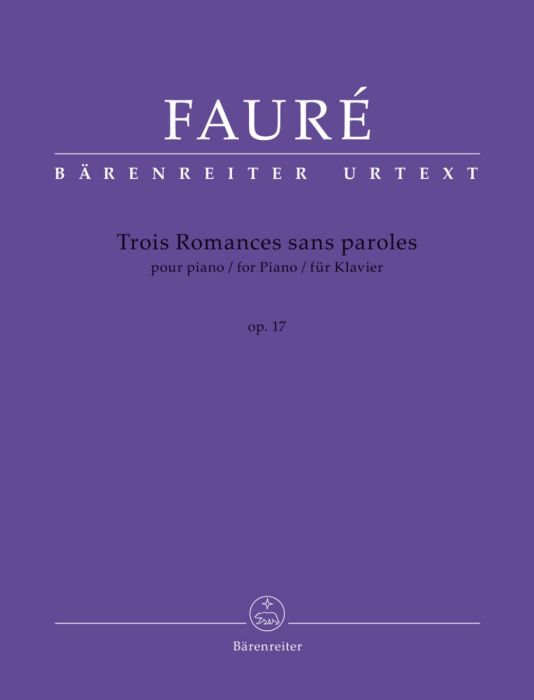 This Urtext edition takes all available sources into account, including the recording by Fauré himself and an early four-hand version of No. 3. It is based on the musical text of the “Œuvres complètes” of Gabriel Fauré and also contains the first version for piano two-hands of the third “Romance sans paroles” in the appendix.