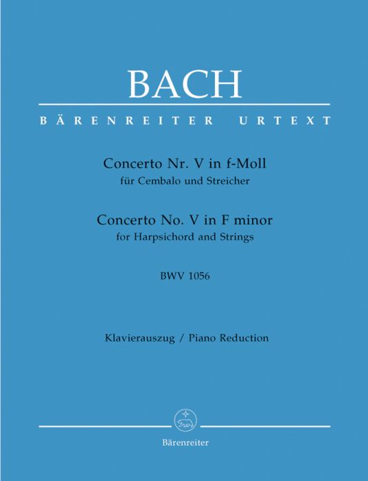 The Concerto in F minor, BWV 1056, is the fifth of the harpsichord concertos contained in the autograph score that Bach wrote out in or around 1738 (Berlin Staatsbibliothek, Mus. ms. Bach P 234). It is one of those harpsichord concertos that reveal themselves to be transcriptions even though the original model is now lost.