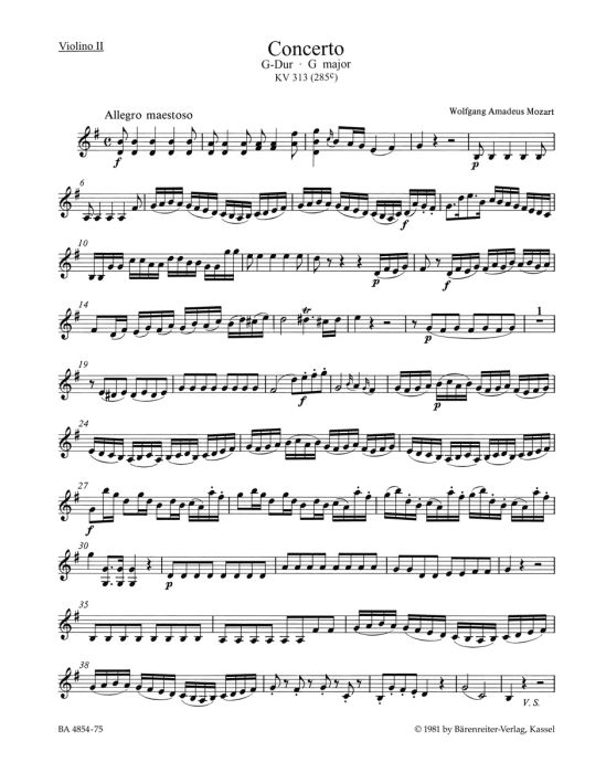 Mozart's Concerto in G major For Flute K.313, composed in 1778, in an authoritative Urtext edition based on the New Mozart Edition.