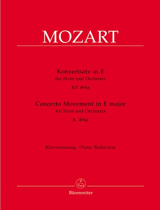 In 1786, the year in which he completed his best-known Horn Concerto (K.495 in E-flat major), Mozart began work on another Concerto for Horn and Orchestra in E major. Only a fragment of the first movement survives.