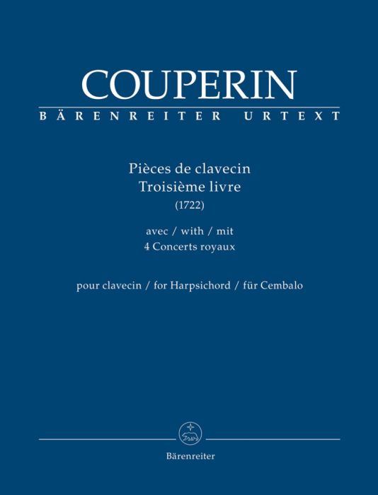 Following the first two volumes of the pioneering new edition, Bärenreiter now presents Couperin’s “Troisième livre” of the “Pièces de clavecin” (1722) edited by Denis Herlin. In addition to the six “Ordres”, the edition also contains the four “Concerts royaux”. For this new Urtext edition, for the first time, Herlin has evaluated the many reprints of the original edition, most of which he unearthed himself in international libraries. All variants are meticulously recorded in the Critical Commentary (Eng).