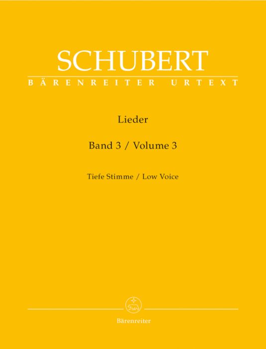 Walther Dürr , one of the most distinguished Schubert scholars, has edited the third volume of Schubert lieder in versions for high, medium and low voice. With this publication, further lieder are now available in Schubert’s original groupings with definitive texts based on the “New Schubert Edition”. The third volume contains not only well-known lieder such as “ Der Wanderer an den Mond ” and “ An die Musik ” but also Schubert’s best-known song cycle “Die Winterreise ”.