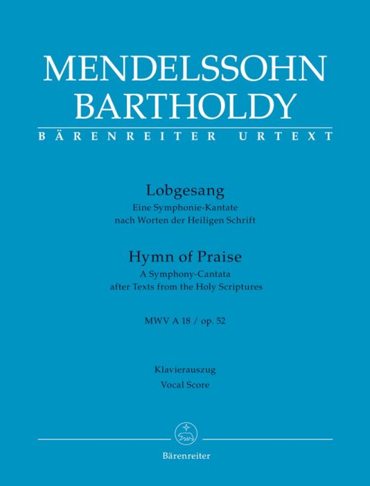 Mendelssohn’s contemporaries frequently mentioned his “Hymn of Praise” in the same breath as Beethoven’s Ninth – and often enough viewed it as an imitation. Mendelssohn authority John Michael Cooper, in his extensive Introduction to this new Urtext edition, shows that the comparison is completely unfounded: with this work Mendelssohn created a new genre to which he gave the name “symphony-cantata”. Later he added a secular counterpart with “Die Erste Walpurgisnacht”.