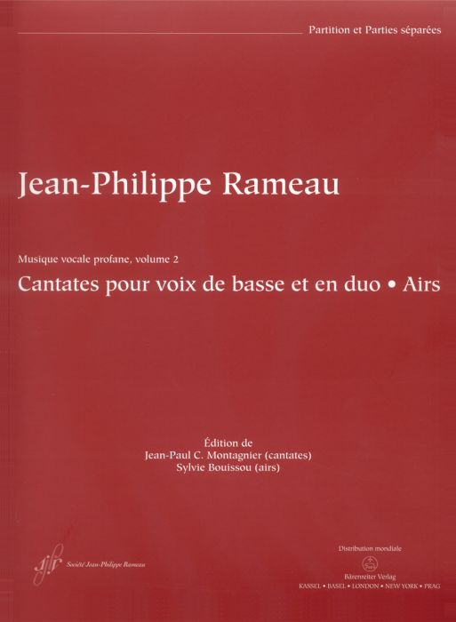 BA 8946 (Vol.1) and BA 8948 (Vol.2) are based on the volume published as part of the “Opera Omnia Rameau”, série III, volume I, “Cantates , Canons, Airs” (BA 8855) and contain the following work numbers: RCT 22-28 (Cantatas), RCT 17-20 bis (Canons) and RCT 21 1 -21 4 (Airs). They are published in a folder each containing score and parts.