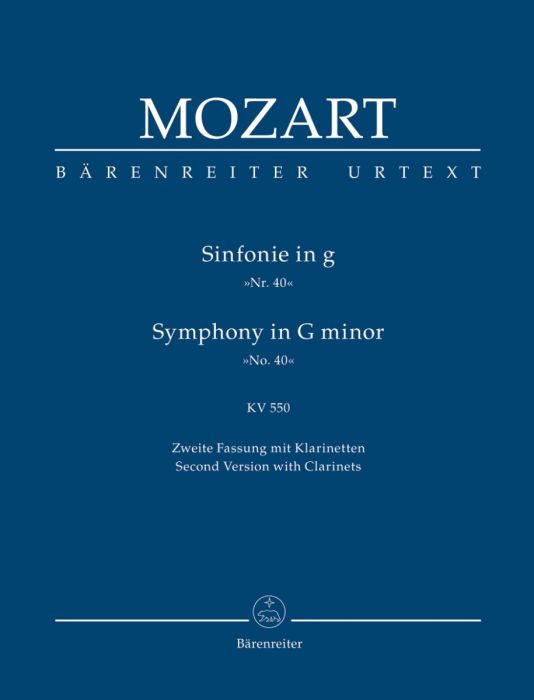 Mozart's famous Symphony in G minor K.550 has come down to us in two versions. The first calls for one flute,two oboes, two bassoons and two horns, as well as strings. Later, Mozart expanded the wind section by adding two clarinets, and at the same time he revised the oboe parts. Even though the version with clarinets is the later one, both versions must be considered as equally authentic.