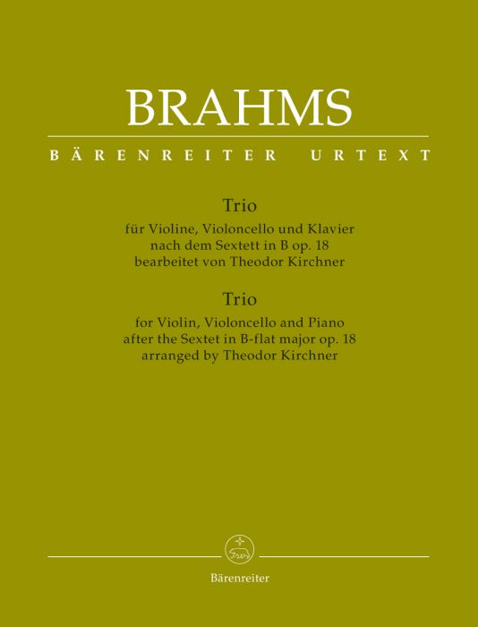 In addition to Bärenreiter’s scholarly-critical editions of Brahms’ trios, an arrangement of Brahms’ String Sextet Op.18 for piano trio by his contemporary and friend Theodor Kirchner is now being published. Simrock, Brahms’ publisher, issued it in 1883. Brahms responded to the arrangement of his sextet with total enthusiasm and praise for the skills of his friend Kirchner (1823–1903).